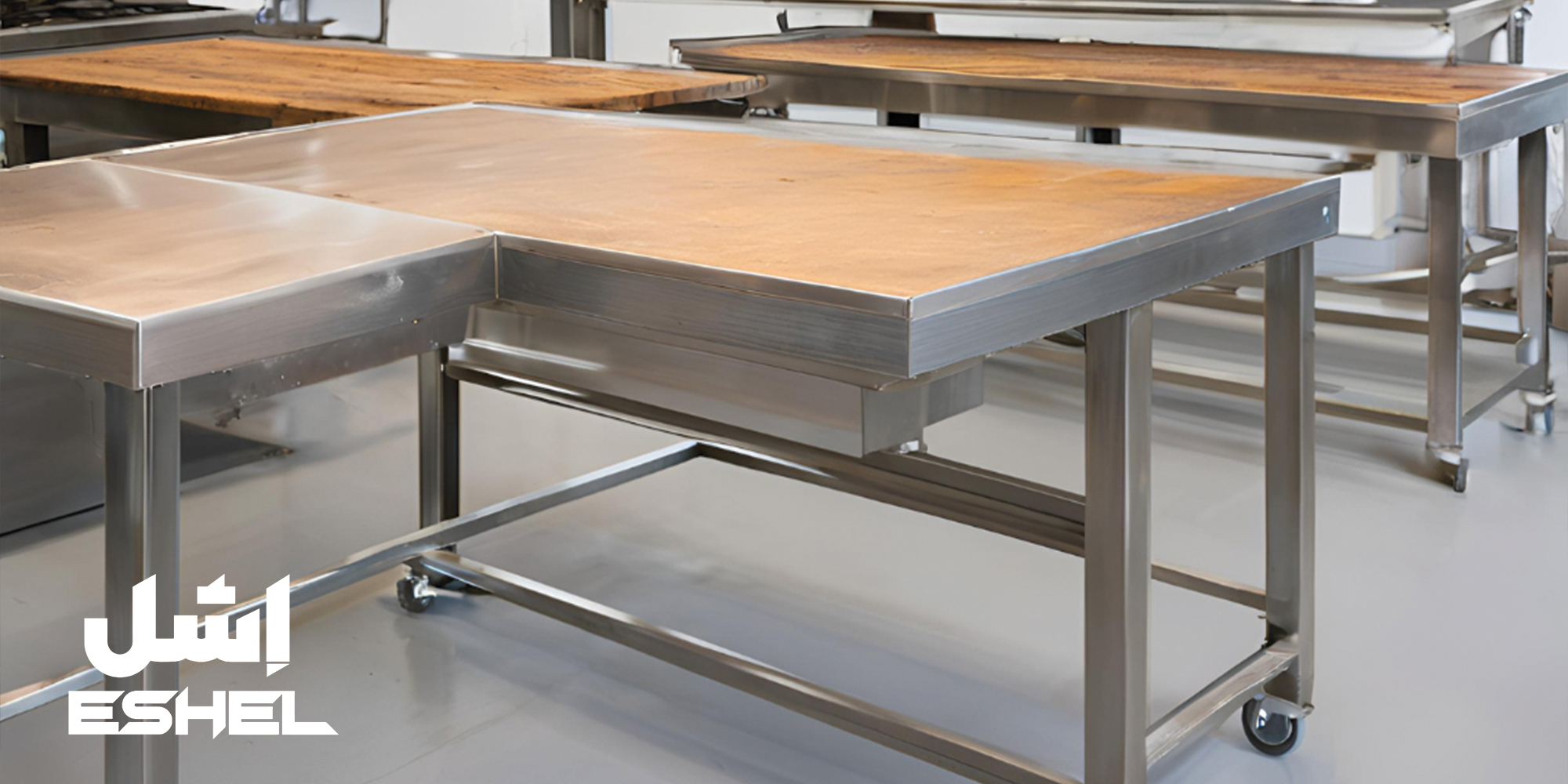 طراحی میز کار استیل برای آشپزخانه صنعتی